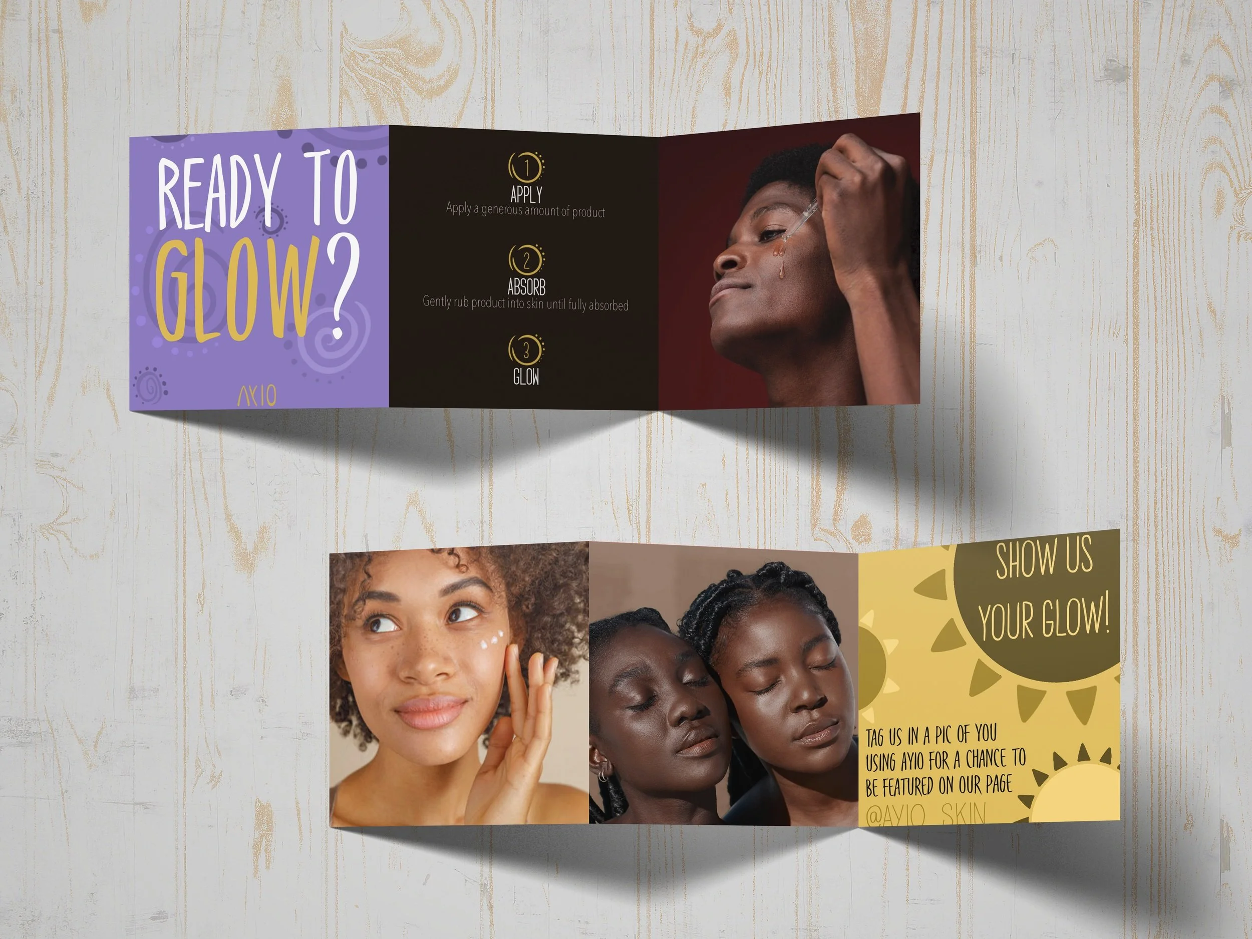 This is packaging for a health and wellness brand called Ayio. Ayio means “sunshine” in Ibibio which is a commonly spoken language in Nigeria. This is a skin care brand specifically marketed towards individuals with more melanated skin. Along with the name, I wanted to incorporate my Nigerian heritage in multiple parts of the brand. I used Adobe Illustrator and Procreate to create illustrative lines, shapes, and motifs that are commonly seen in traditional Nigerian face and body painting.